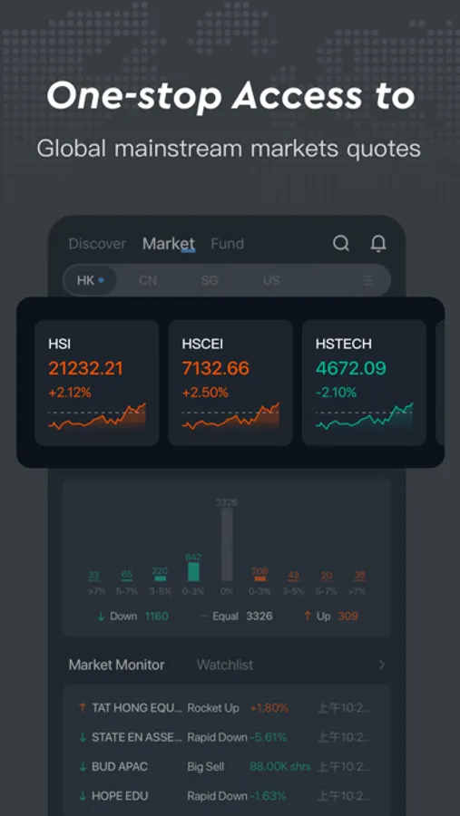 • Global markets: US, HK, CN-A Share, SG stocks with real time level-2 market data for HK and US markets to let you seize opportunities faster;