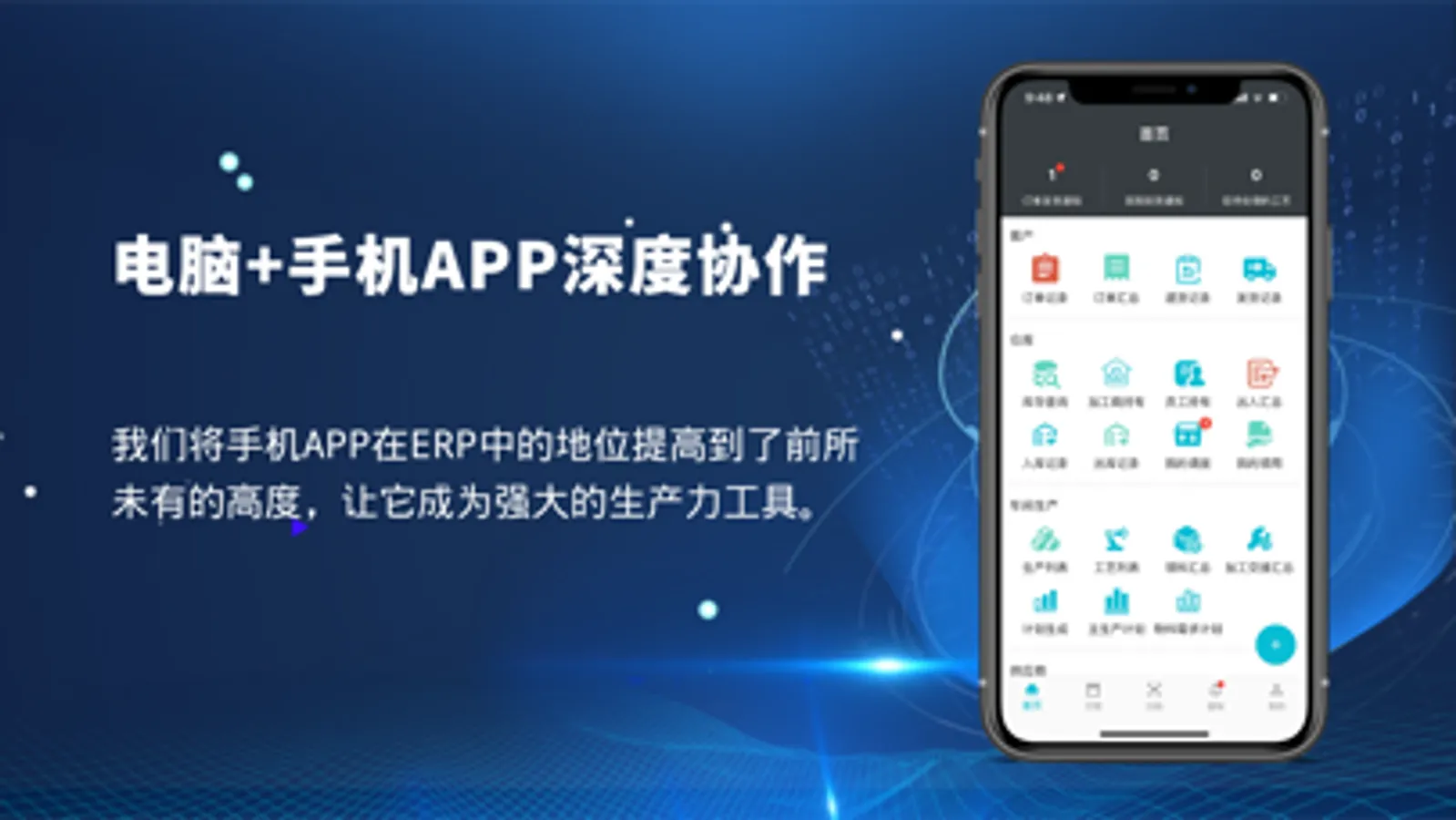 开发ERP所贯彻的思路之一,便是提高手机APP的在ERP系统中的重要性,提升APP的在工厂日常中的使用频率。我们将电脑端95%的功能做到可以在手机上操作,并且深入探索,发挥手机特有扫码、拍照、随取随用的优势,同时避免手机输入慢的劣势,扬长避短,在我们的整套软件中,手机APP成为主要的工具, 而不是一个可有可无的补充。