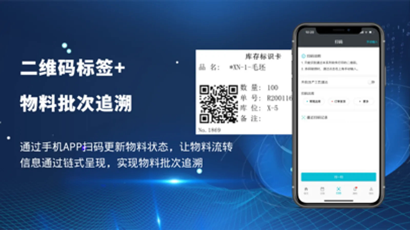 我们参考了“区块链”的设计思路,让携带二维码标签的物料在车间流转,通过手机APP扫码更新物料状态,让物料流转信息通过链式呈现,实现物料批次追溯。