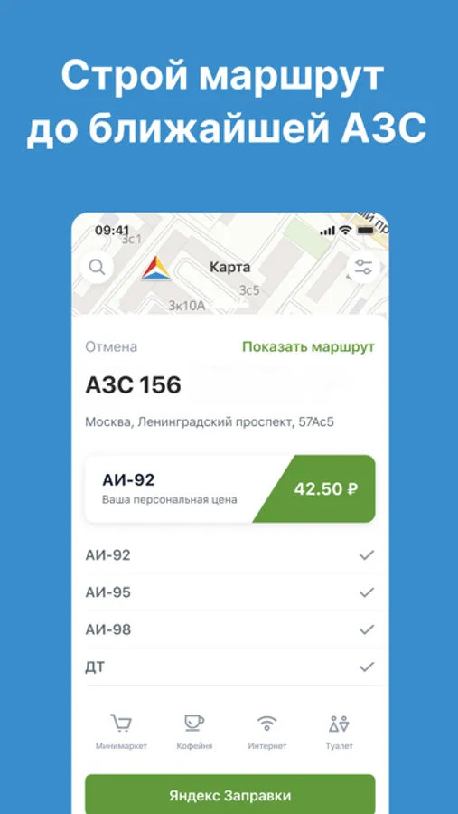 - карта АЗС с фильтрацией по виду топлива и услуг,