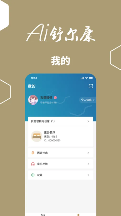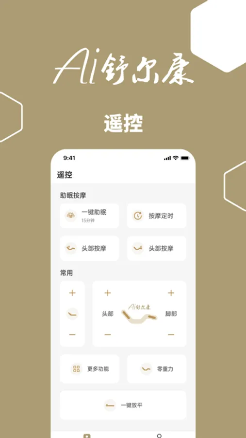 Ai舒尔康是一款基于Wi-Fi连接智能床的APP,实现智能床的头部、脚部、背部的升降;拥有按摩、打鼾干预、一键助眠等功能,为您提供更美好的生活体验。