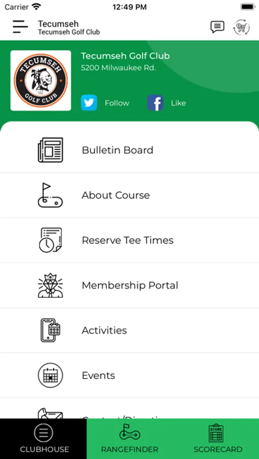 Tecumseh Golf Club gives you access to an on-course rangefinder, live scoring system, course information, weather updates, tee-time booking service, and messaging systems functions. Additionally, the Tecumseh Golf Club app may be used to sign up for events, view your membership portal, order food and beverage, and receive course promotions at Tecumseh Golf Club.