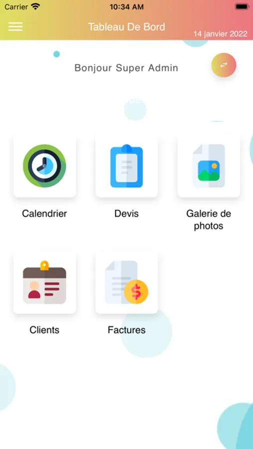 5. L'utilisateur inscrit reçoit un code via sms, fournis par GRP, afin d'avoir accès à l'application pour faire des demandes de devis, demandes de rendez-vous ou faire le suivi des projets.