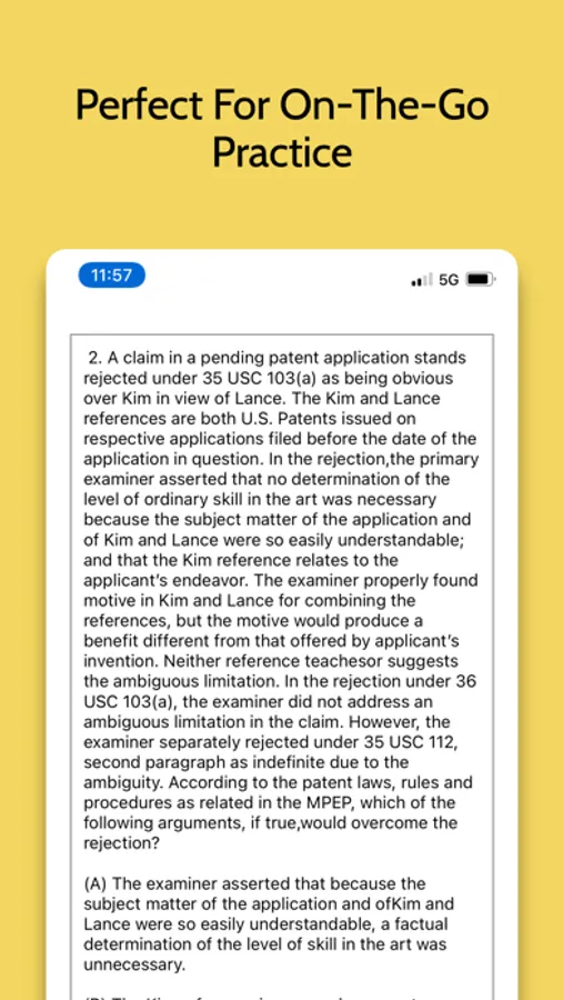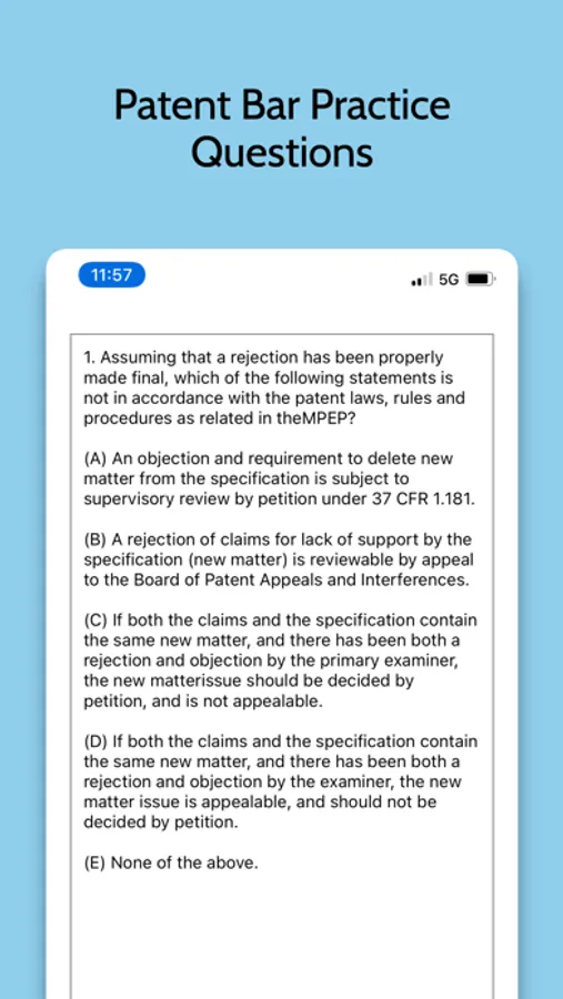 PatentBarOne is a patent bar prep app. Currently, OED Exam October 2003 AM Questions (originally posted Dec. 23, 2003) is available in flash card form. Other tests will be added at no additional cost but price will increase with each additonal test added.