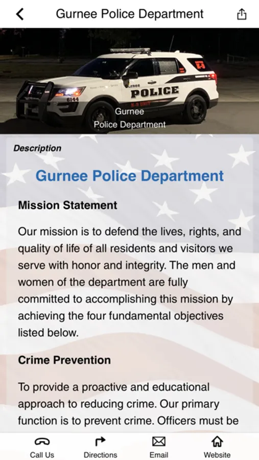 On behalf of the men and women of the Gurnee Police Department, welcome to our app. This app is for the employees and family members of the Gurnee Police Department as well as the community it serves. It contains information about our department as well as safety and crime prevention tips. Gurnee Police Department employees will have access to a full range of wellness tools.