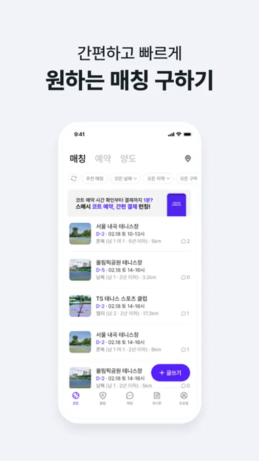 테니스 매칭에 필요한 모든 것을 지금 스매시에서 만나보세요!