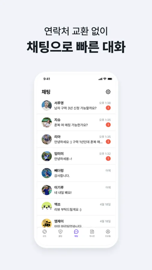매너있고 나이스한 파트너들과의 테니스 매칭!