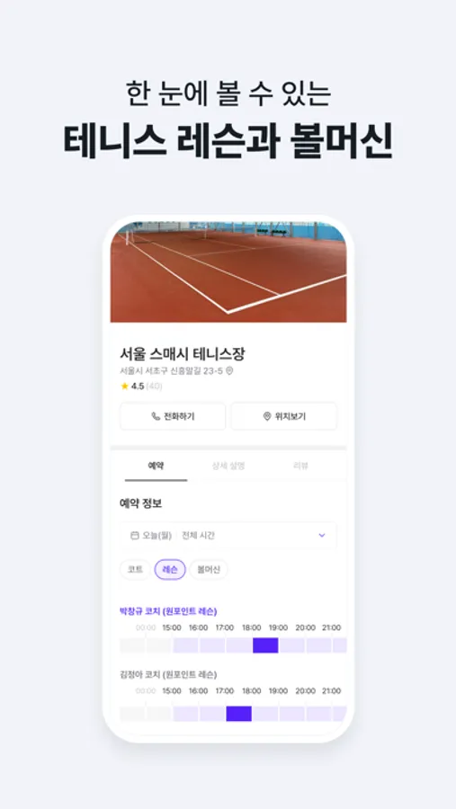· 테니스장 대관, 레슨 그리고 볼머신까지