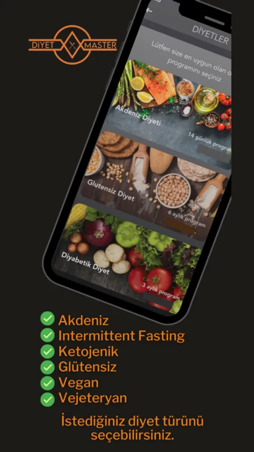 Intermitttent fasting, Ketojenik, Glütensiz, Vegan, Vejeteryan, Akdeniz vs. gibi beslenme tiplerinden size uygun olanı seçebilirsiniz. Tüm tariflerimiz, listelerimiz ve besin değişimleriniz sizin seçimlerinize göre düzenlenir.