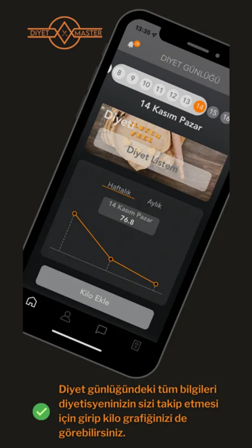 Fiziksel özelliklerinize ve hastalıklarınıza göre SİZE ÖZEL diyetlerin hazırlandığı Türkiye ve Dünya’da ilk ve tek online diyet uygulaması.