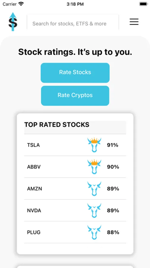 Stoxup is the first and only stock rating site, by the people, for the people. The one-stop location to know how the “street” truly feels about an investment. Stock prices aren’t determined by metrics such as PE ratio, volume, market cap, etc. They’re simply determined by the supply and demand of the stock; how much people are willing to pay for it. And this, in turn, is determined by peoples’ perception of a stock. If people like a stock, they will buy it, and its price will increase. This perception... is presented in the Stoxup rating. Search for an investment, rate it, see how others have rated it, stack it up against other investments, and have one simple number to rank the investment. Then invest your way to happiness!