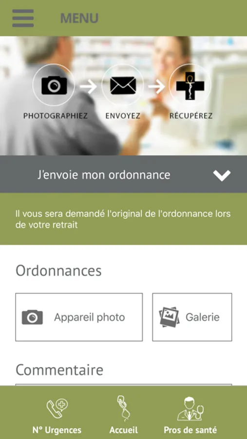 - Envoyer vos ordonnances en avance sur notre plateforme sécurisée et récupérer vos traitements directement en officine.