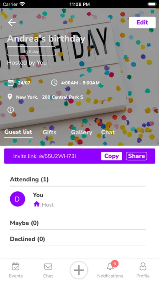 *Invite guests to your event via a direct link