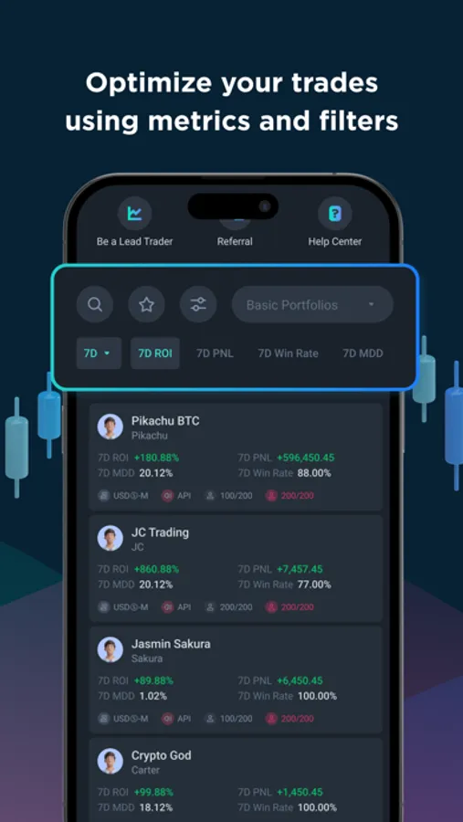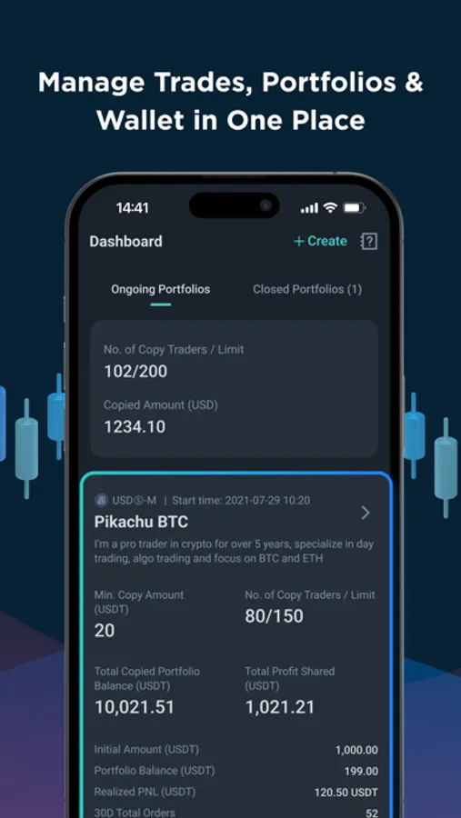 Explore and copy trades from 1000+ lead trading portfolios managed by a growing number of crypto traders from all around the world.