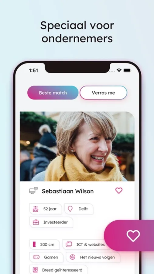 BizzKiss maakt een koppeling met basisgegevens uit de KvK, waardoor zaken als leeftijd, woonplaats en beroep altijd kloppen. Eindelijk een datingapp met HONDERD PROCENT juiste informatie en zonder nepprofielen en catfishes!