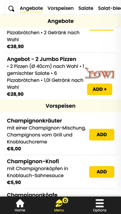 - Durchsuchen Sie die Speisekarte des Restaurants und sehen Sie sich alle anpassbaren Optionen im Voraus an