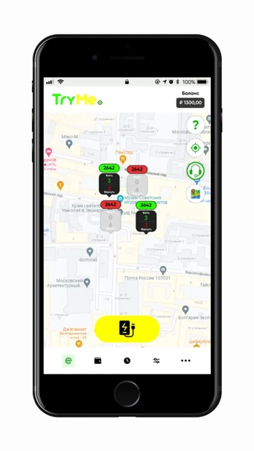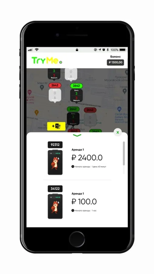 2) Найдите на карте ближайший терминал TryMe, отсканируйте QR-код, возьмите аккумулятор.