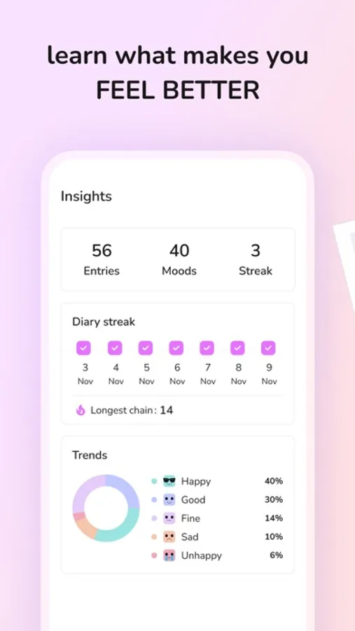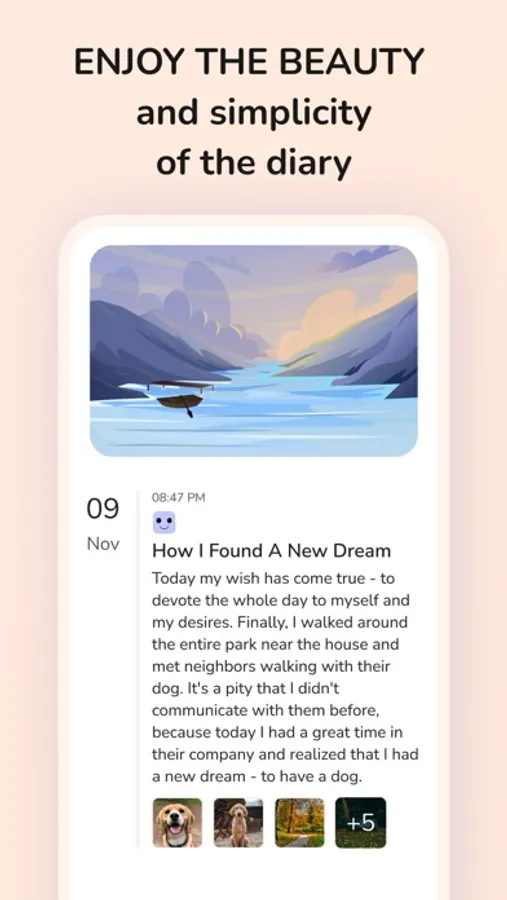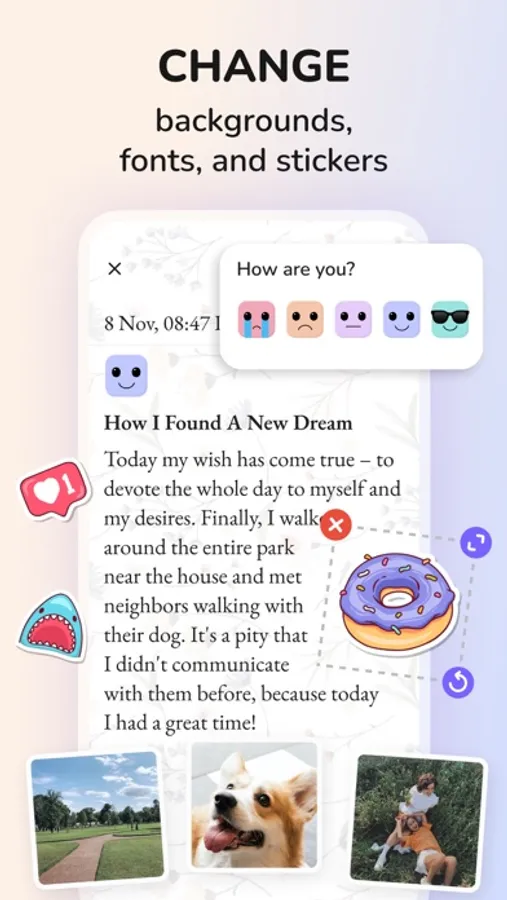 Daily Diary: Journal with Lock - is your personal journal for every day. It is a diary with a lock and mood tracker for you to note your experiences, explore your emotions and add photos to the entries. Make it your private and secure notebook, use it as a journaling app for free.