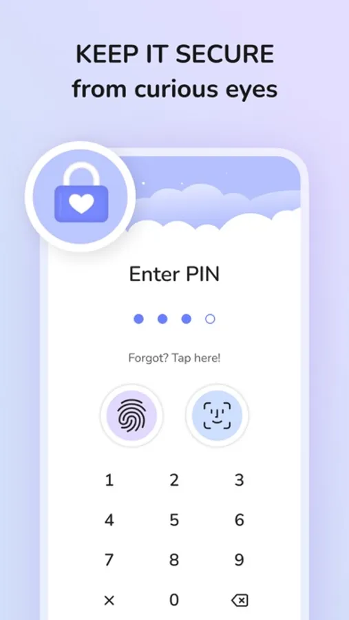 Use fingerprint or face-ID to keep your personal notes private. Or set a password to be sure that your diary is protected.