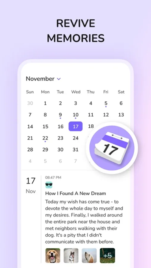 Save your memories in your Daily Diary and keep them secure from curious eyes by using password, fingerprint or face-ID. Note the mood and use the emotion tracker to learn what makes you feel better. The app is beautiful and simple to use.