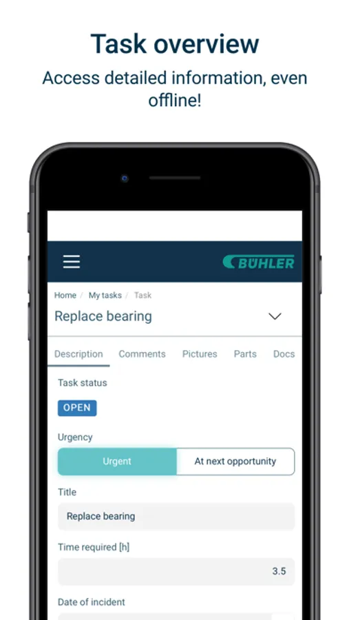 With Bühler ProPlant Mobile you have your preventive maintenance jobs always in the palm of your hand.
