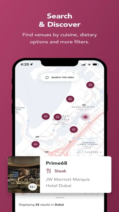Open the app anywhere in Qatar or the UAE and discover what venues and offers are available near you.