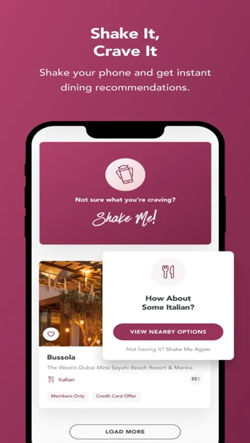 If you’re not sure where to go, shake your phone while the app is open to receive dining suggestions and offers.