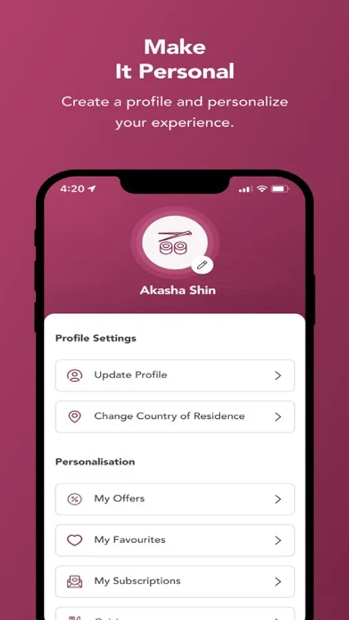 Create a profile and personalise your app experience by selecting your favourite venues, cuisine preferences and more.