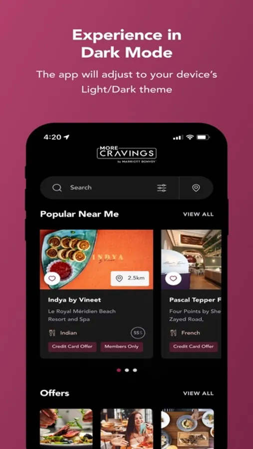 Discover flavours and the best deals at your fingertips with the More Cravings by Marriott Bonvoy™ App.