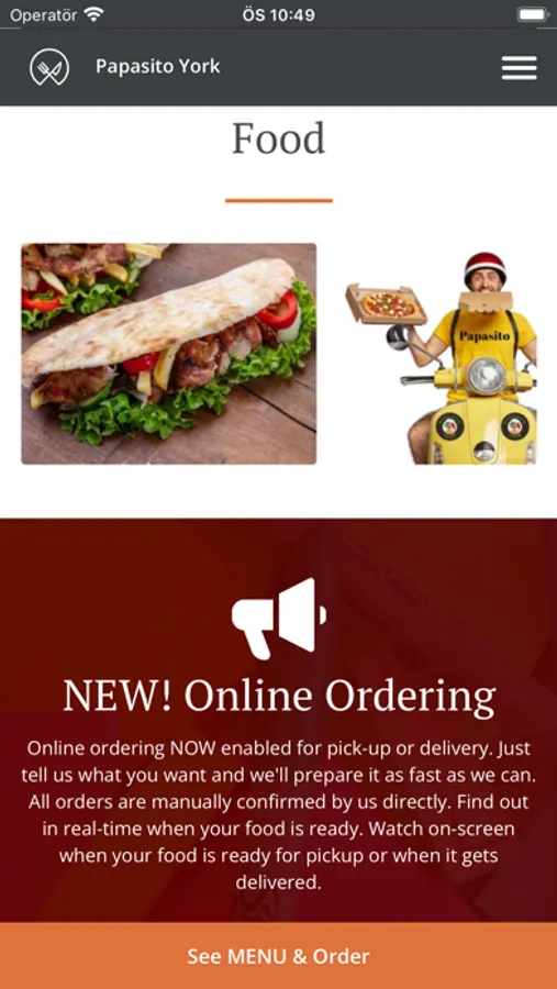 See menu and order direct from Papasito York official app. Watch real-time when your food is ready for pick up or delivery. Order for later option gives you the chance to pre-order your food in advance and have it ready when you want it.