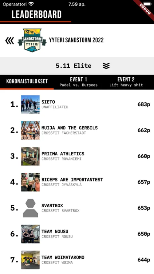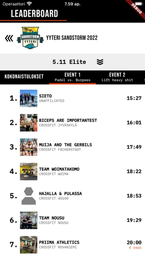 - Kilpailijoiden ja joukkueiden tarkemmat tiedot