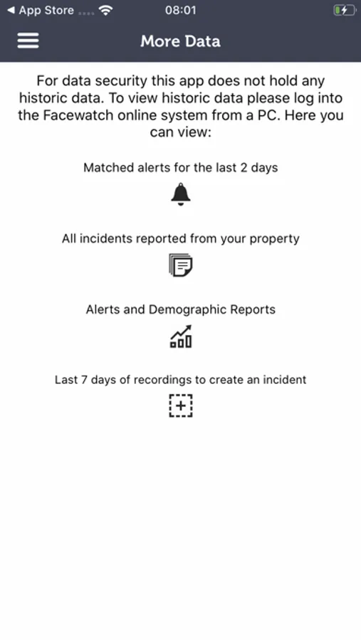 SECURITY: You have complete peace of mind regarding security and Data Protection, we use bank grade security and we share images and crime types as data controllers with other businesses that have subscribed to the Facewatch system.