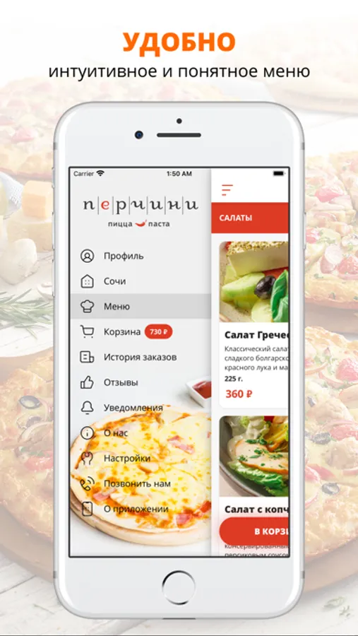 Приложение Перчини — это удобный способ заказа еды домой или в офис! Мы готовим наши блюда из качественных свежих ингредиентов и доставляем еду по Сочи быстро и бережно.