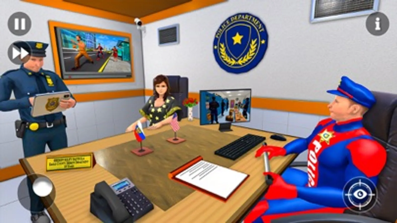 Hop in your police patrol car and patrol around the crime city and look out for any disturbance in the city, chase and take down bad guys by using your super hero cop powers or you can just fly around the city cause you're a superhero cop of your city.
