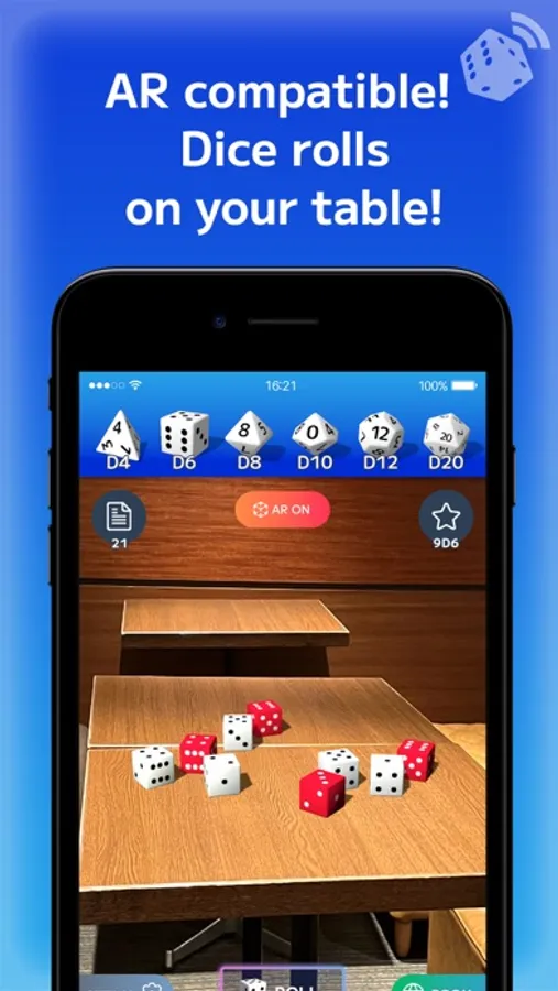 ● AR Mode: Roll the dice on surfaces like your table, captured by the camera.