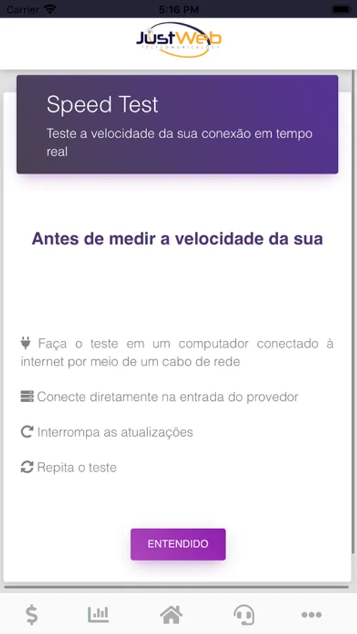 Com o aplicativo JUSTWEB SAC você poderá consultar as suas faturas, assinar seu contrato digitalmente, verificar o seu consumo de banda e muito mais!
