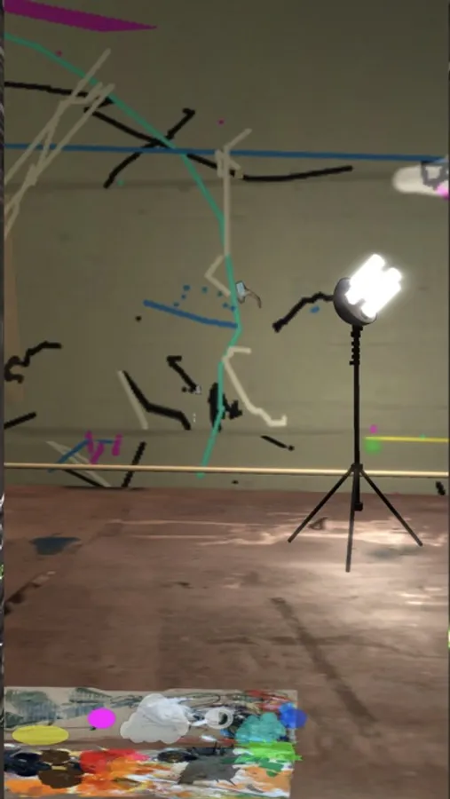 Apart from re-painting the walls in the studio you can also paint in Augmented Reality, spray graffiti in 3D, on the real world surfaces around you.