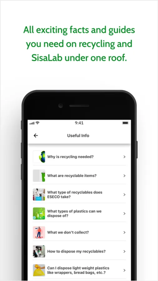 • Info Centre: All exciting facts and guides you need on recycling and SisaLab under one roof.