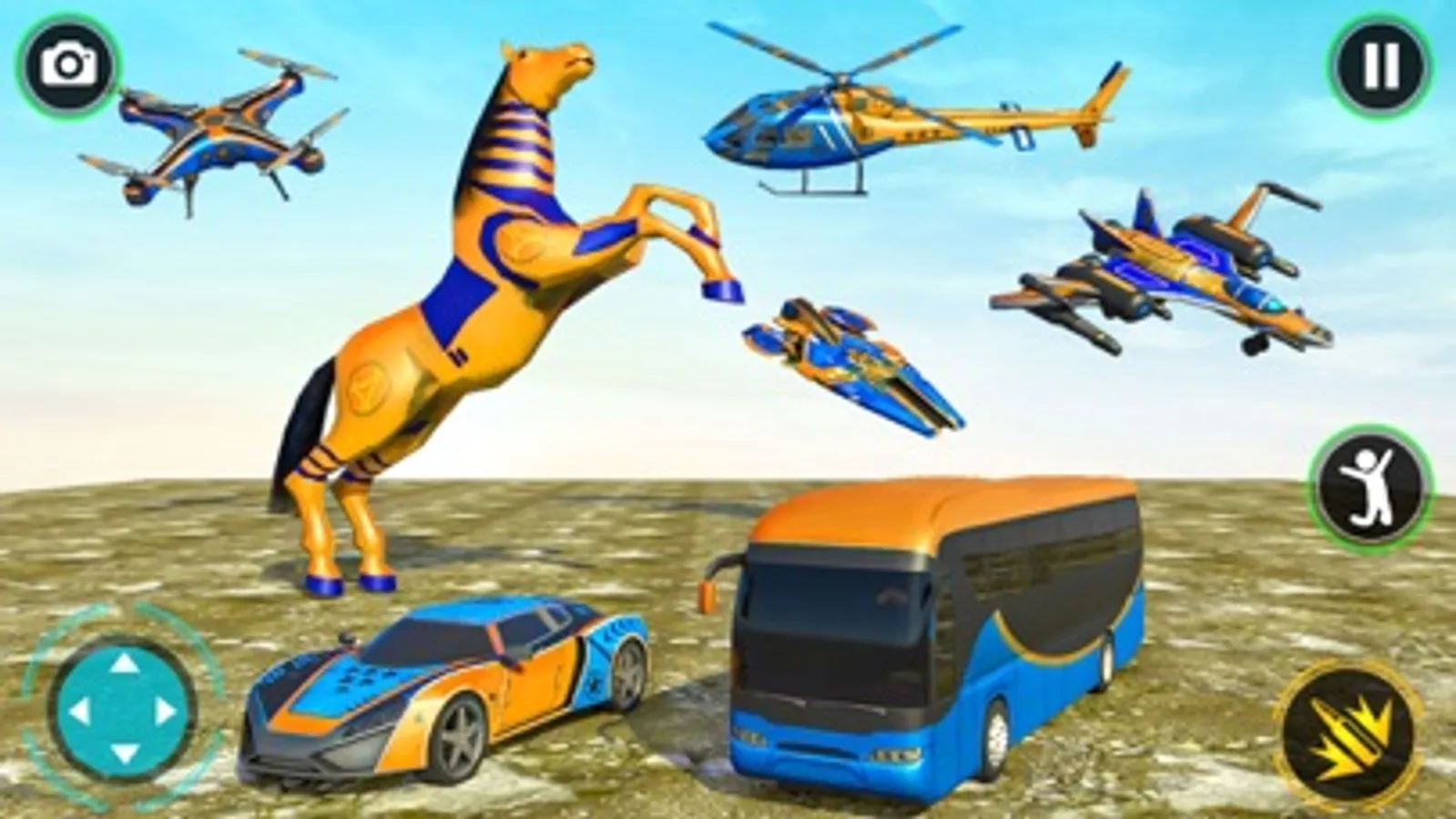 In the battle of Horse Simulator Robot Game, you have to fight with enemies of robot bus games. So, let the alien robot encounter trouble in robot Horse Simulator Robot Game. Every time enemy robots of flying bus games are trying to destroy peace with the intent take over the city in free robot games. You have to win the city battle of flying robot games by performing bus robot transformation mission in bus robot games. The real fun of robots game new police bus games is going to begin in this bus robot game. If you are the one who can take the duty to bring peace back in bus transformation robot game by eliminating all the enemy mech robots. Do not miss the chance to be the tank gamepowerful police robot who will protect the city by utilizing superpowers in this new robot shooting games and mech games with fun of transforming robot games. It’s the moment to get in action with the use of gun shooting skills. Aim & Shoot! Be the last police robot standing in the final battle of futuristic robot war games.