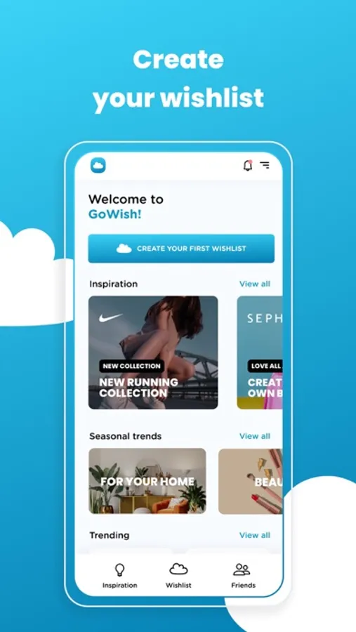 GoWish is your digital wishlist, where you can create and save all your wishes in one place. Download the GoWish app, create a profile, and add wishes that you can easily share with all your friends. The app makes it easy for your friends and family to reserve and purchase your wishes.