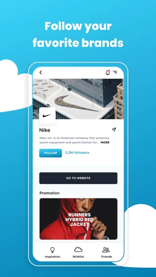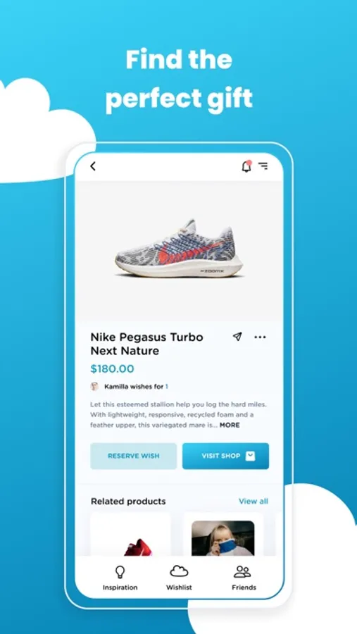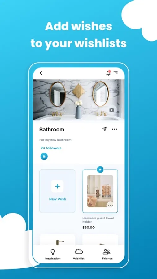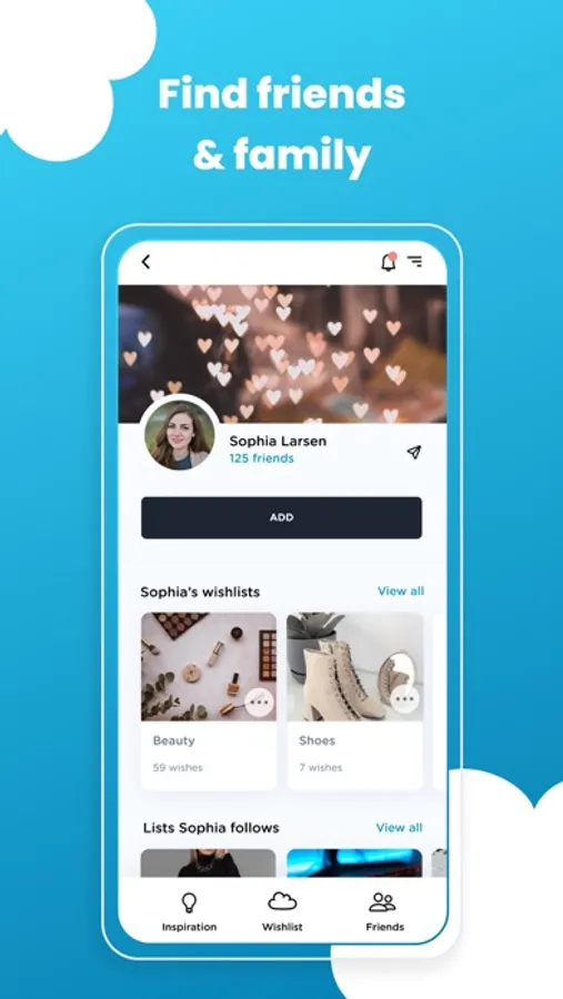 With the app, you can create your gift wishes wherever you are. You can add wishes to your wishlists from any online store in the world - there are no limitations.