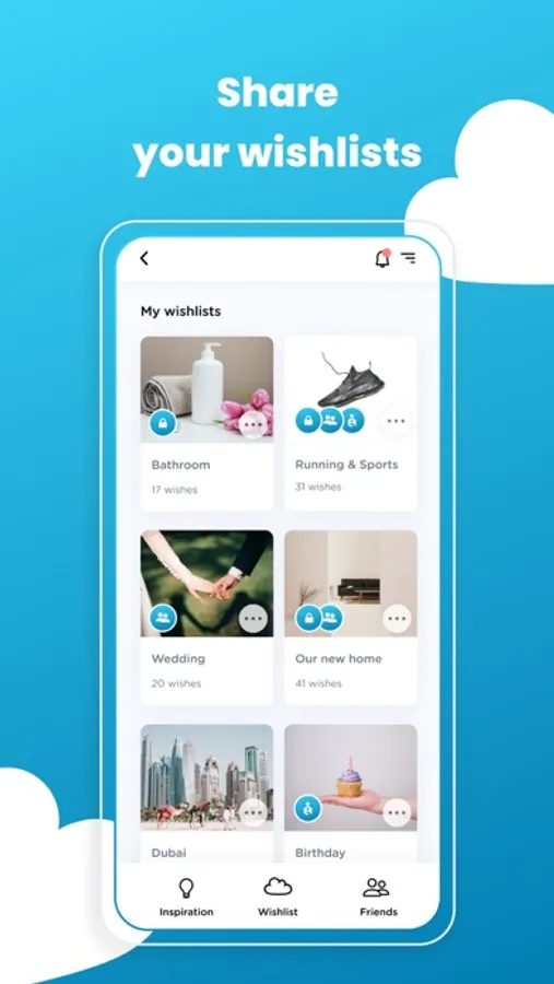 It has never been easier to share a wishlist than with the GoWish app. Share wishlists with your friends using the app, share via SMS, WhatsApp, Messenger, email, or one of your other favorite media.