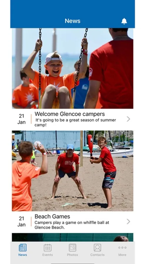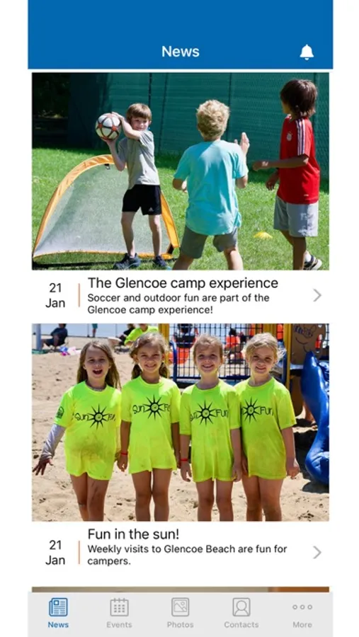 Glencoe Camp App features include targeted push notifications from your child’s camp group, calendar of activities (including a save-to-calendar feature to sync to your personal calendar), photo albums, and a newsfeed from your child’s camp group.