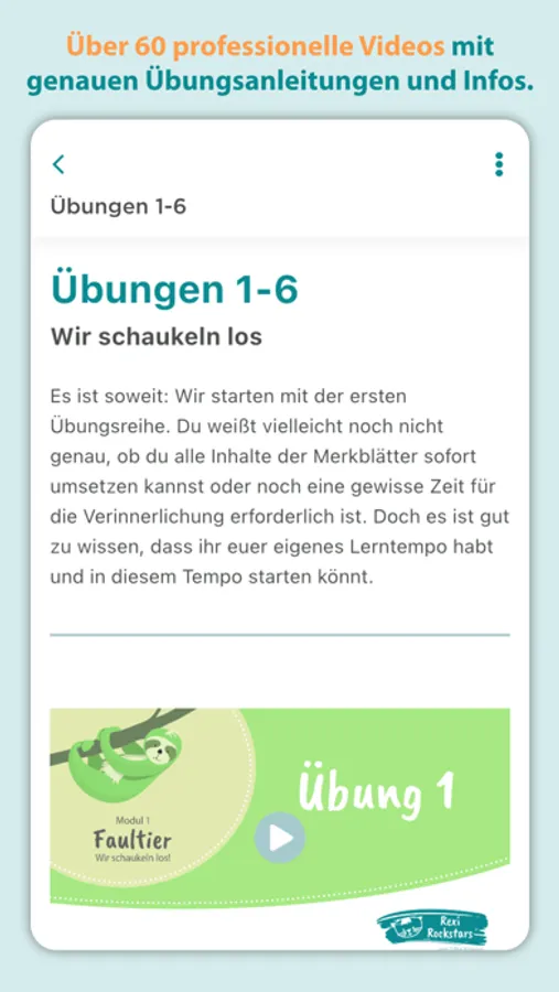 Die App für die Rexi Rockstars Onlinekurse zur Reflexintegration: Mit der App kannst du flexibel auf alle Inhalte deines Rexi Rockstars Kurses zugreifen. Dich erwarten Übungs- und Wissensvideos sowie hilfreiche Übungsanleitungen.