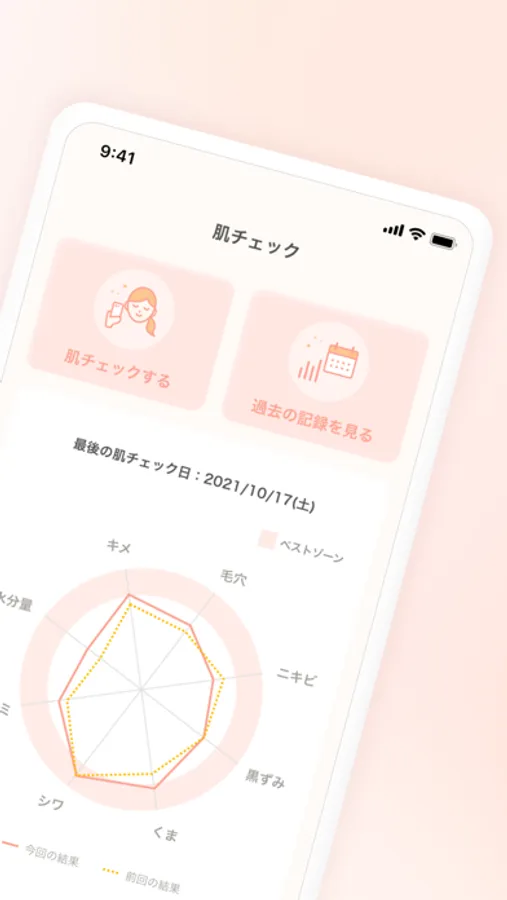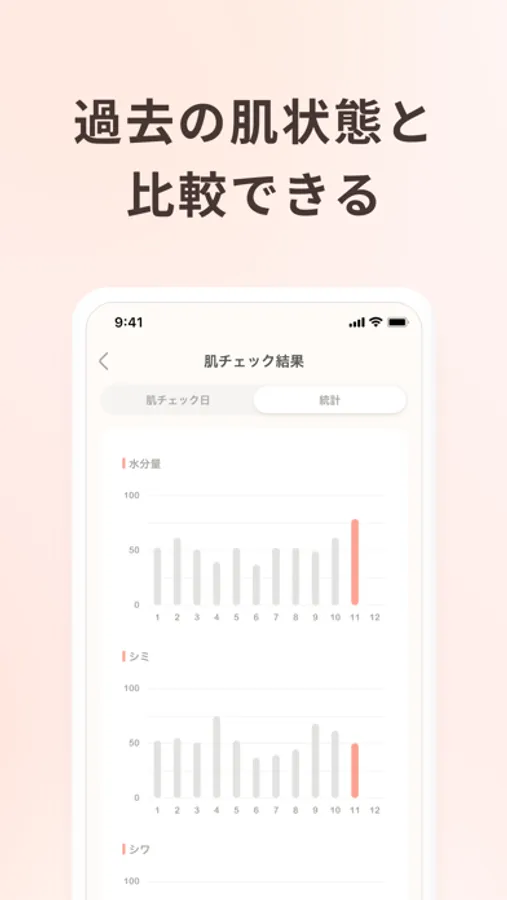 肌状態を月単位で記録でき、肌状態の変化が一目瞭然。