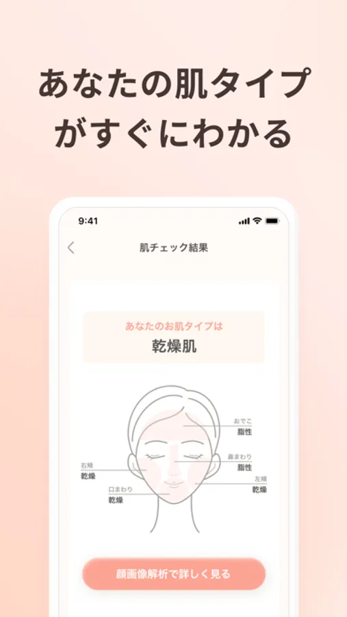 肌診断はスマホで顔写真を取るだけ!自宅にいながら、手軽に肌診断が可能。