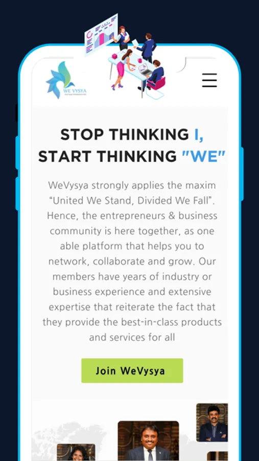 WeVysya helps you achieve your long-term goals by connecting you with quality business professionals. We work on the concept of word-of-mouth which is the most powerful way of doing business.