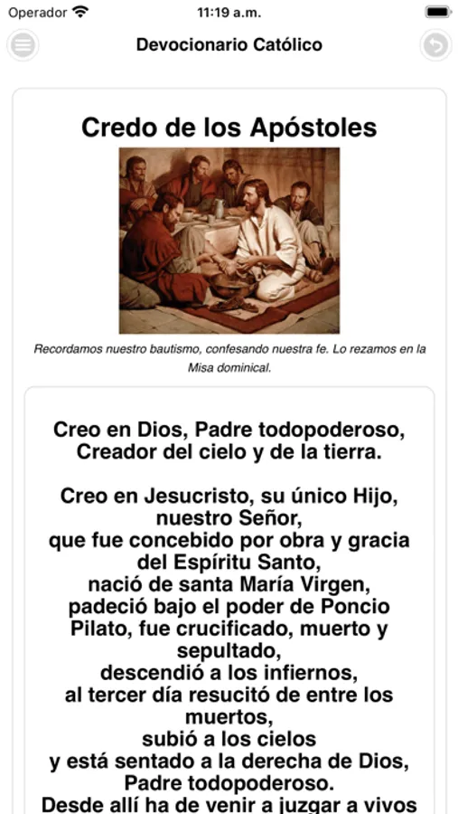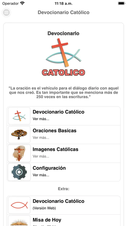 Ademas encontraras un acceso directo a las oraciones básicas de la iglesia católica, una pequeña galeria de hermosas imagenes, un acceso directo a la Misa de Hoy.