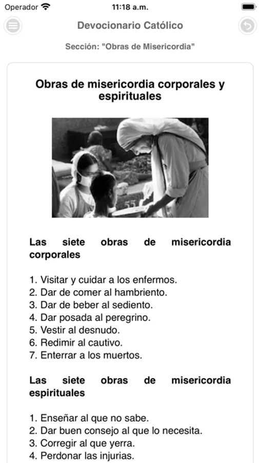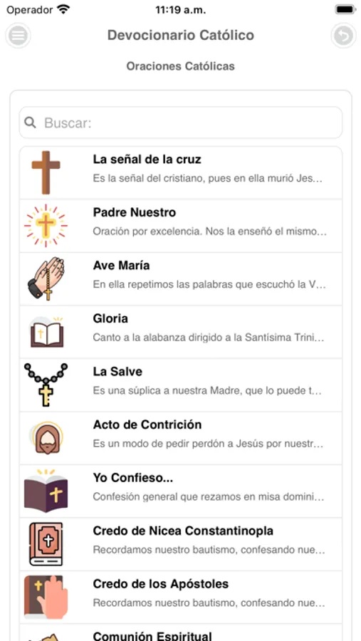 En esta aplicación encontraras 251 oraciones católicas separadas en 3 secciones, citas bíblicas, los 10 mandamientos, obras de misericordia, la importancia de la confesión y el perdón de los pecados y un pequeño examen de conciencia.