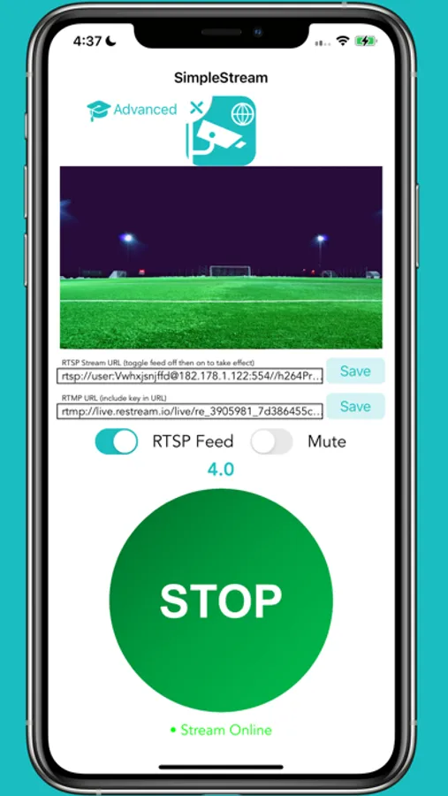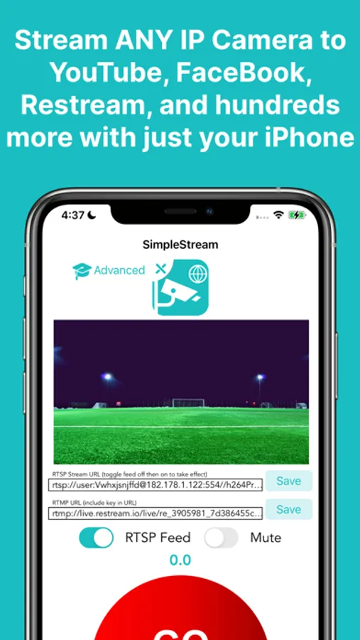 With SimpleStream, you can stream any network camera to YouTube, FaceBook, Restream, or hundreds of other platforms with just your iPhone or iPad! This eliminates the need to purchase expensive encoding devices to translate the RTSP feed to RTMP, and makes streaming your events far easier than before. Want to Stream Your Cat to YouTube? Need to stream an important conference room meeting to FaceBook? We've got you covered! Just launch the app and hit "Go Live."